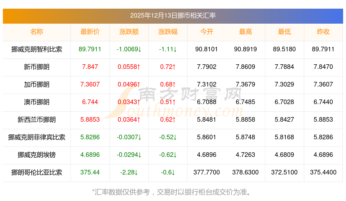 2025年12月13日挪币相关汇率查询