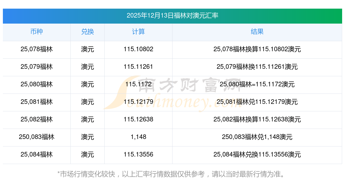 2025年12月13日福林兑澳元汇率_今日汇率查询