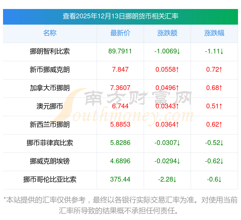 2025年12月13日挪朗相关汇率查询