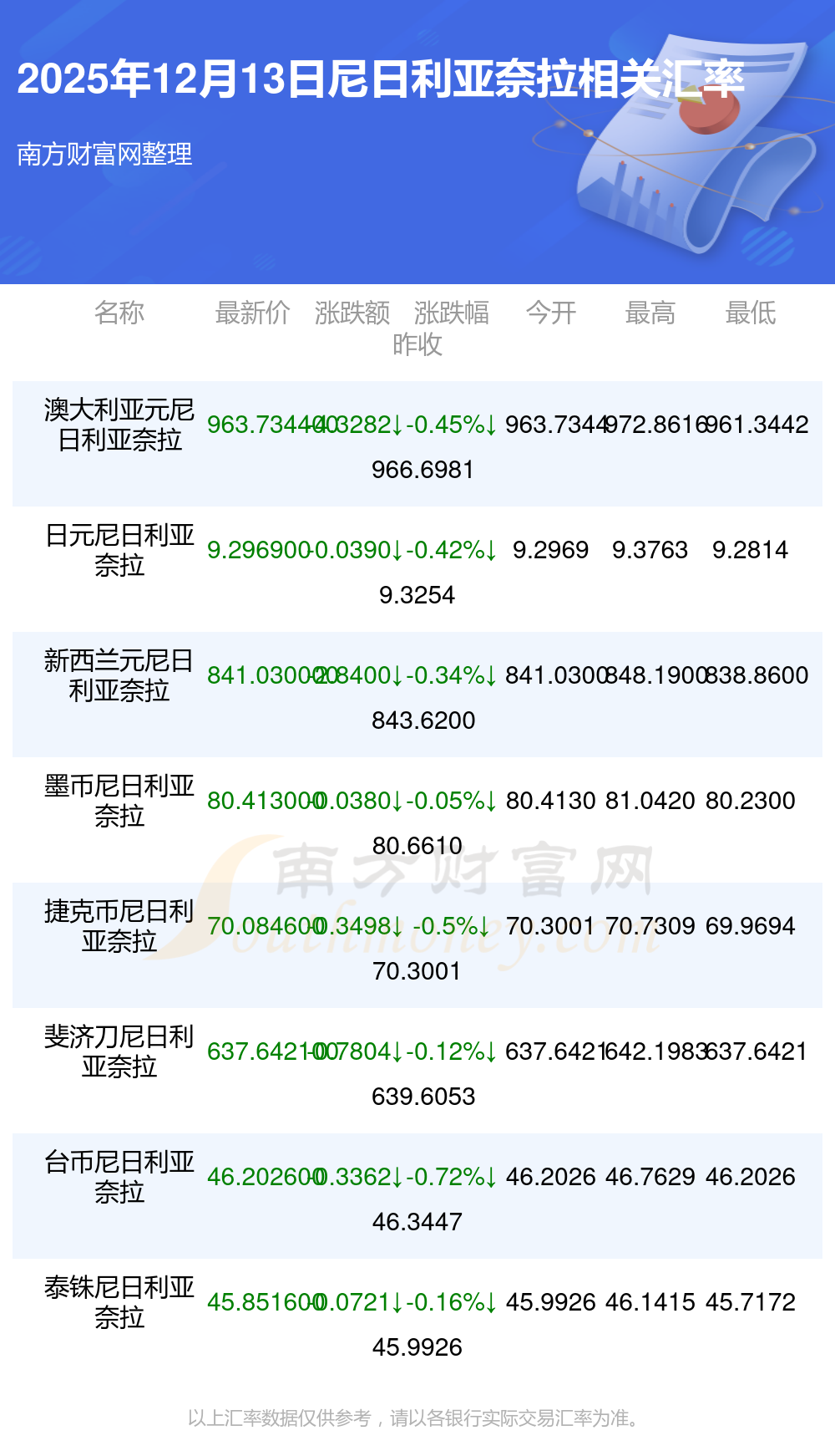 2025年12月13日尼日利亚奈拉相关汇率查询