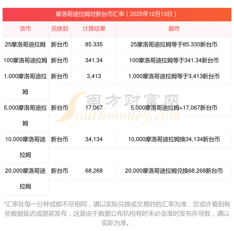 今天58摩洛哥迪拉姆兑换新台币折算汇率是多少_外汇查询2025/12/13
