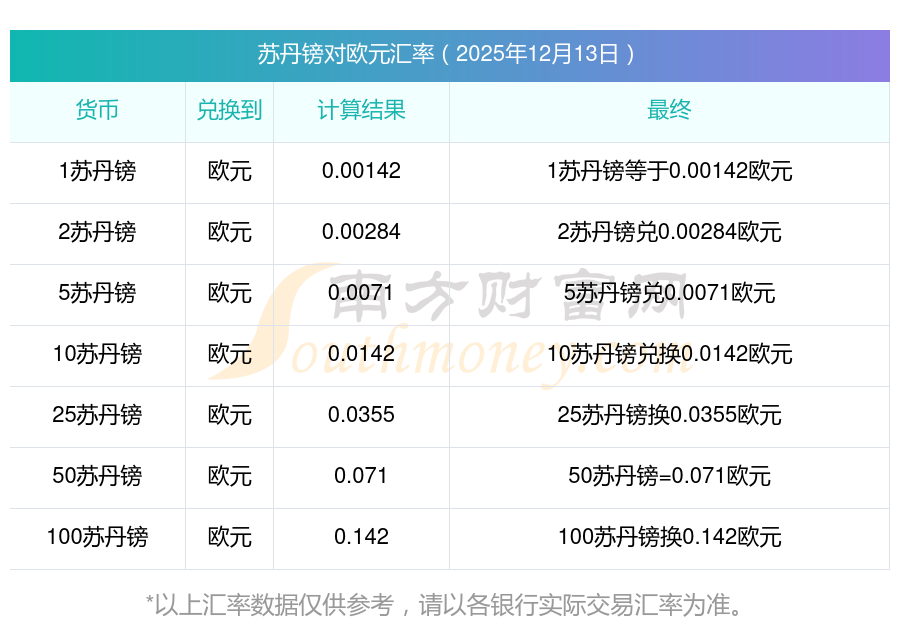 今天55苏丹镑兑换欧元的最新汇率 附查询方法2025-12-13