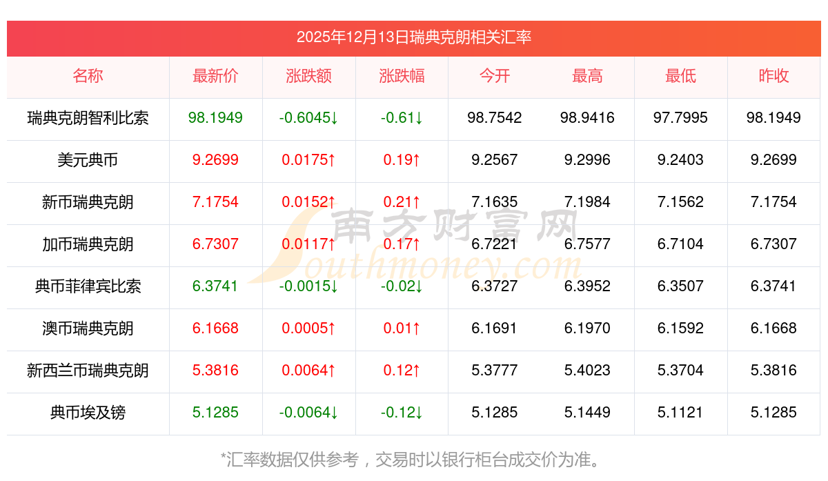 2025年12月13日瑞典克朗相关汇率查询