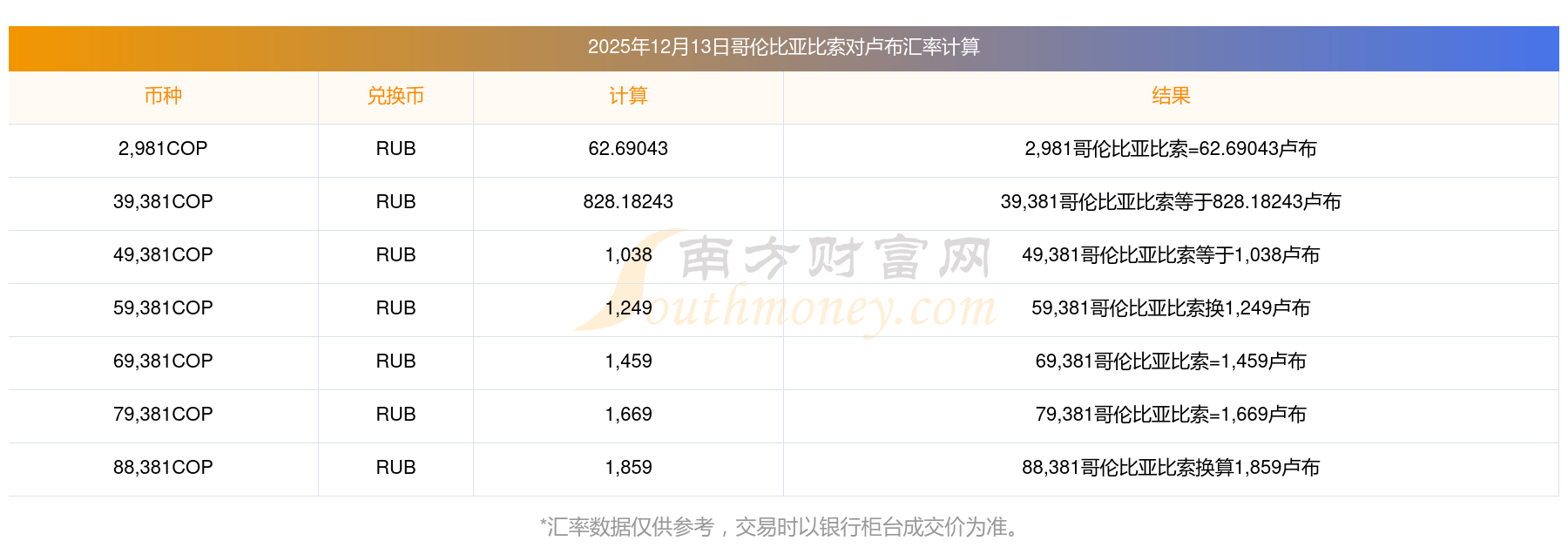 哥伦比亚比索13今天折算成卢布汇率是多少 汇率查询方法2025年12月13日