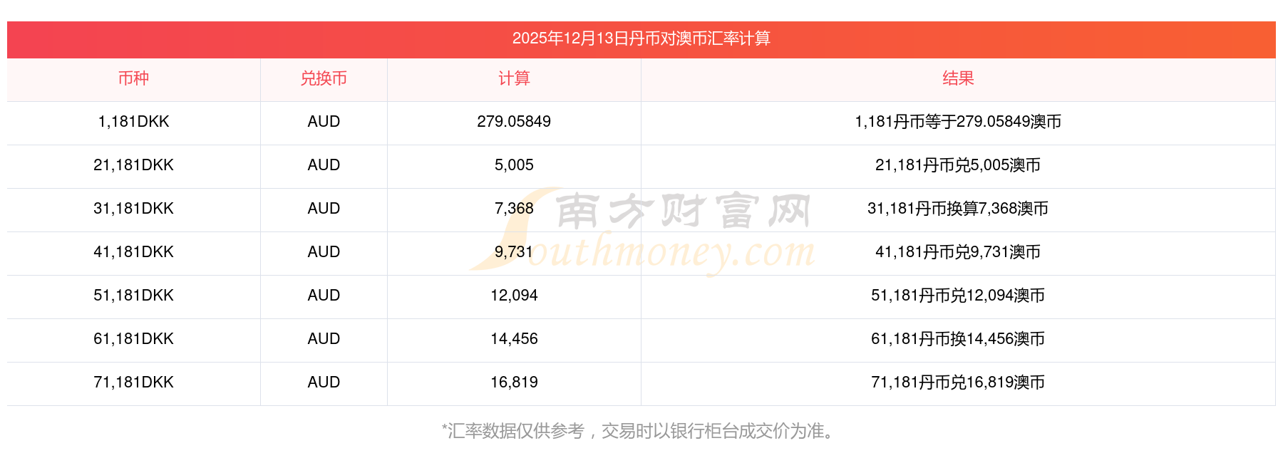 10丹币可换多少澳币?(2025年12月13日)