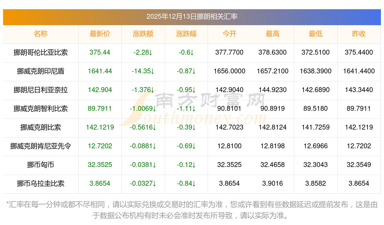 南方财富网为您提供挪朗对秘鲁新索尔汇率最新价格详情。