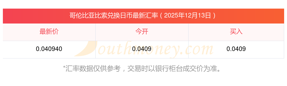 哥伦比亚比索对日元汇率今日?2025-12-13