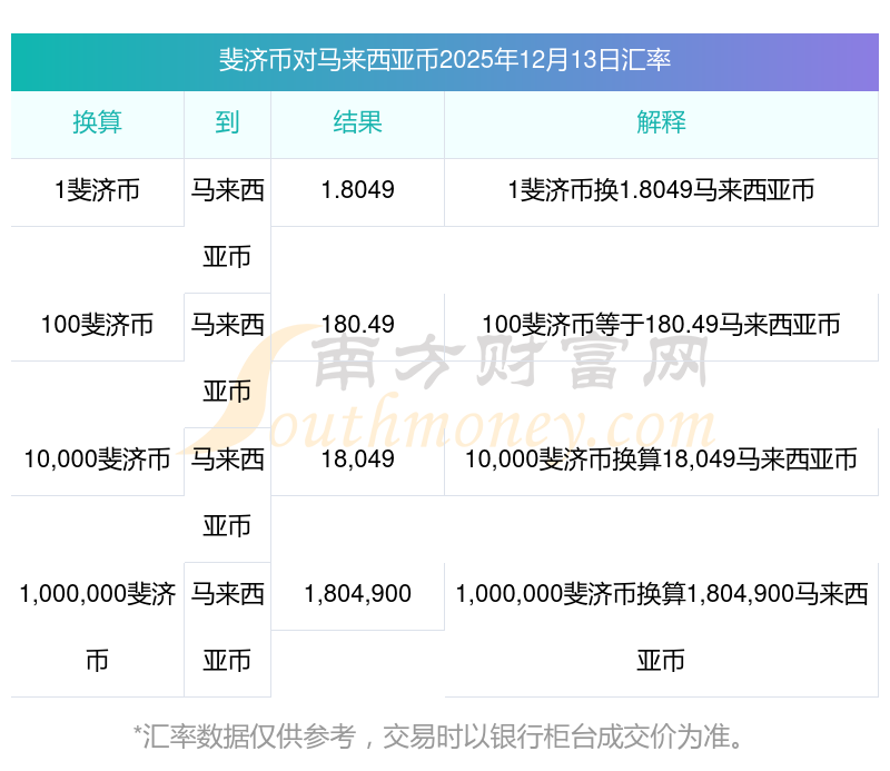 斐济币外汇多少 计算2025年12月13日斐济币兑换马来西亚币汇率最新