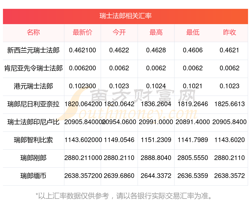 南方财富网为您提供瑞士法郎对苏磅汇率最新价格详情。