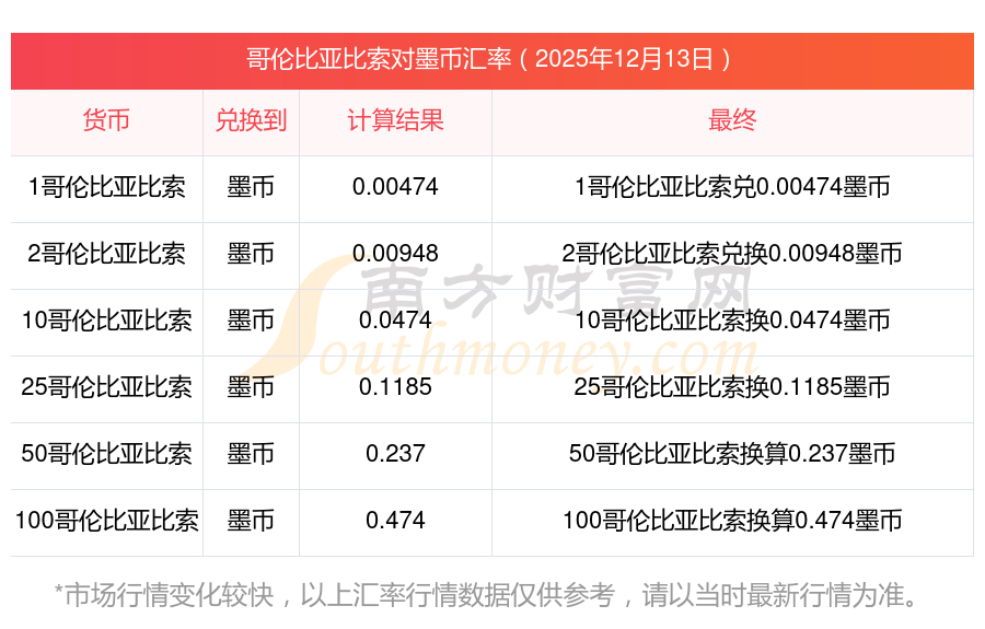 今日哥伦比亚比索汇率_哥伦比亚比索转换墨币汇率计算表 2025/12/13