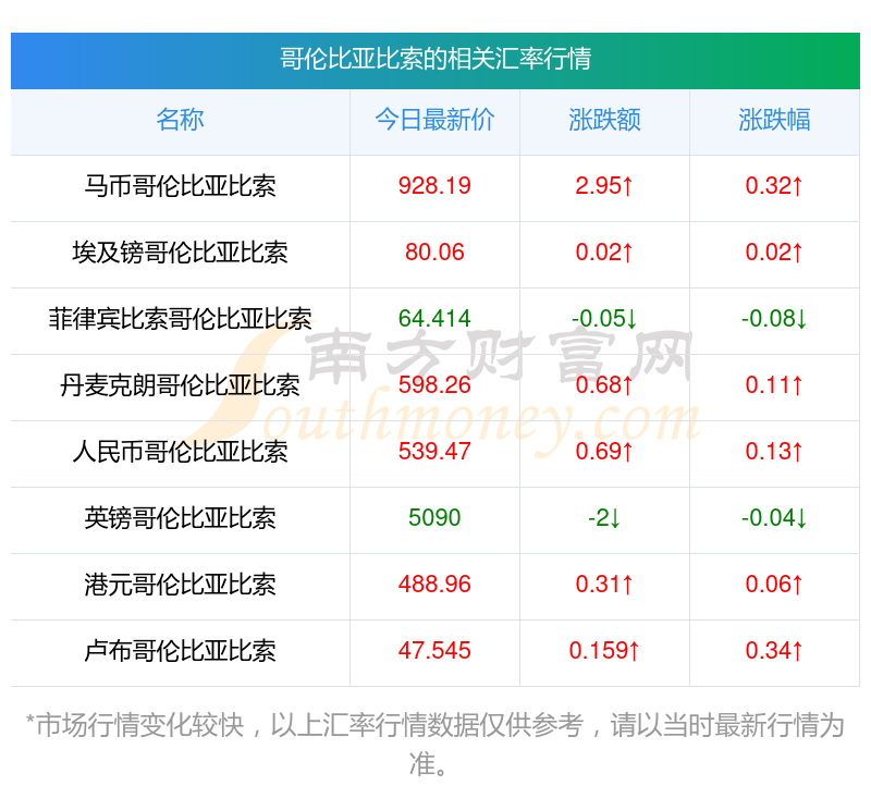 南方财富网为您提供哥伦比亚比索对墨币汇率最新价格详情。