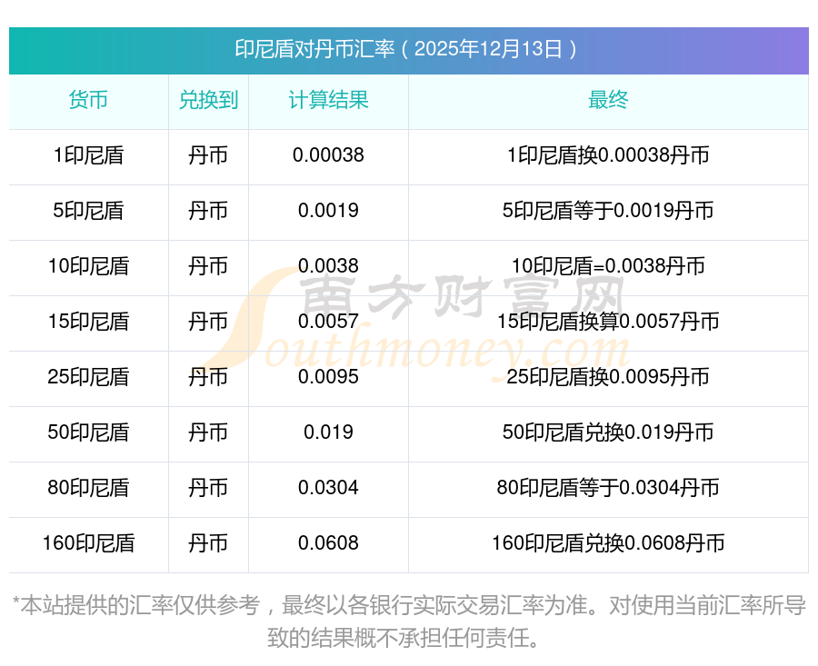 40印尼盾兑换丹币结汇行情 今天印尼盾汇率报价查询2025/12/13