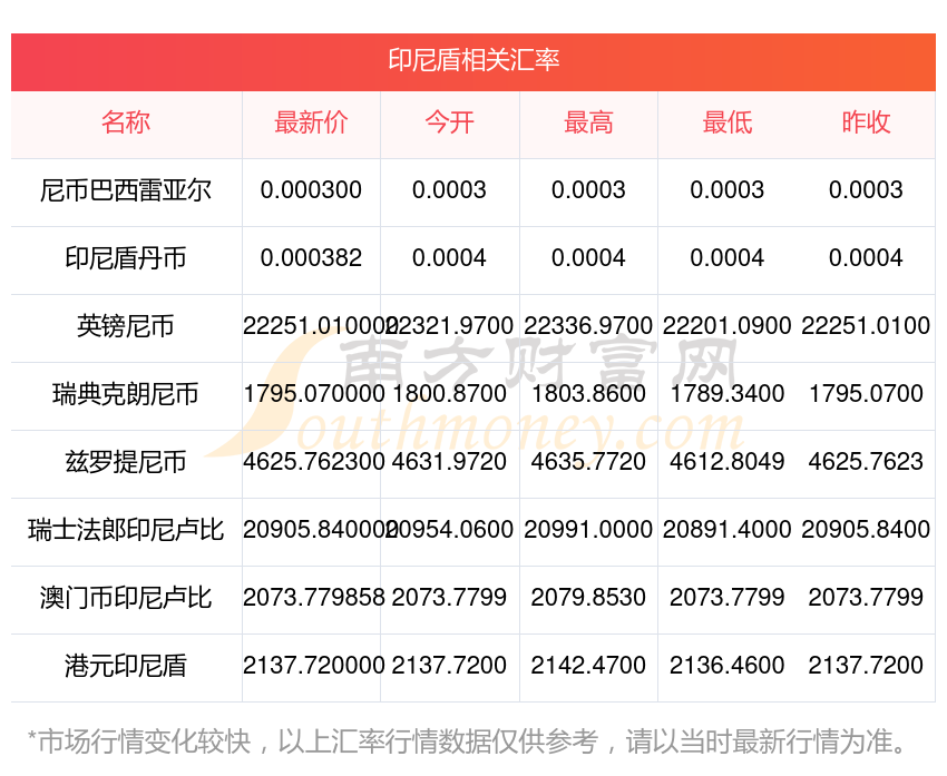 南方财富网为您提供印尼盾对丹币汇率最新价格详情。