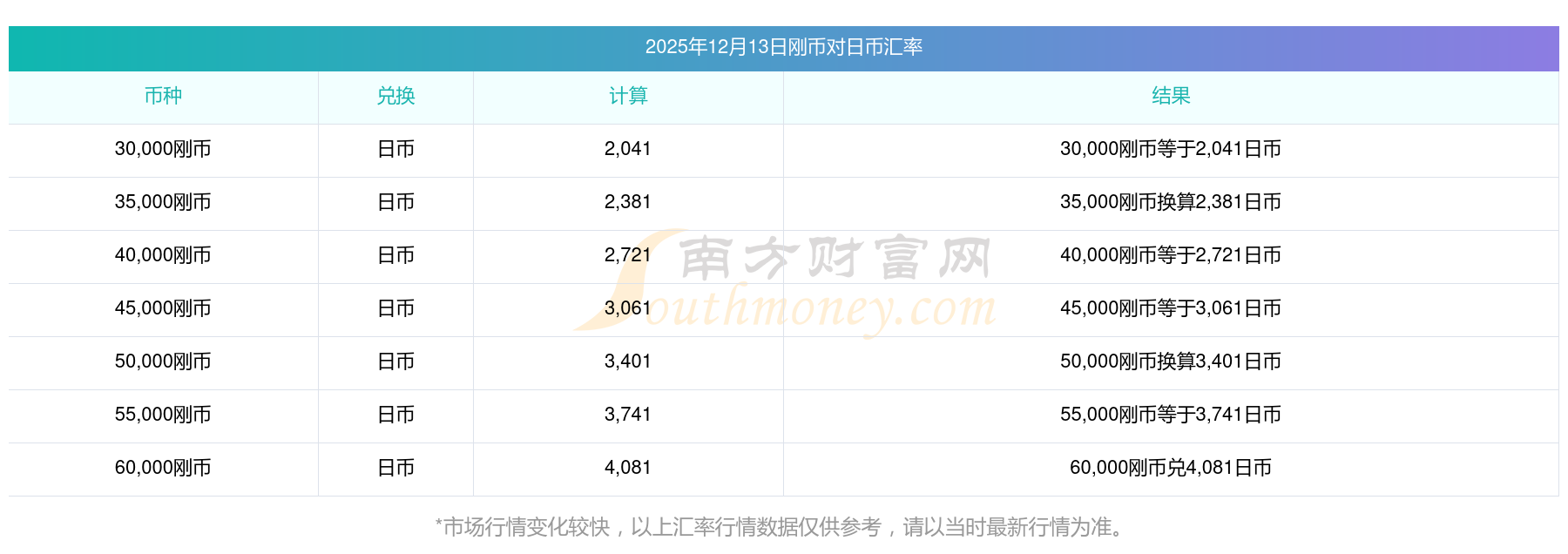 南方财富网为您提供刚币对日币汇率最新价格详情。