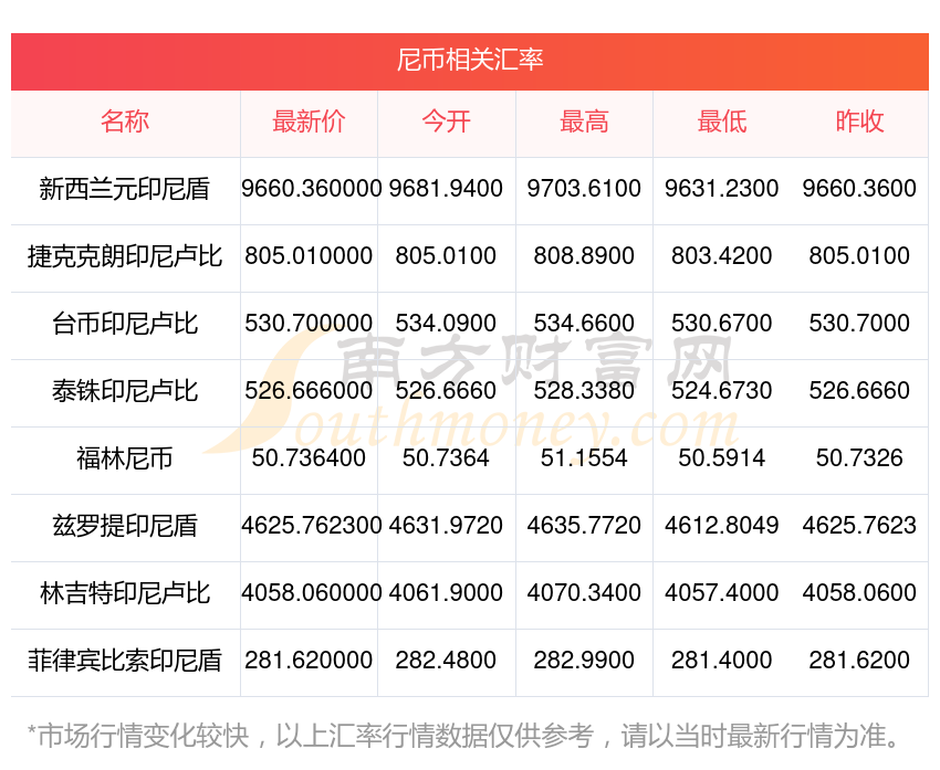南方财富网为您提供尼币对尼日利亚奈拉汇率最新价格详情。