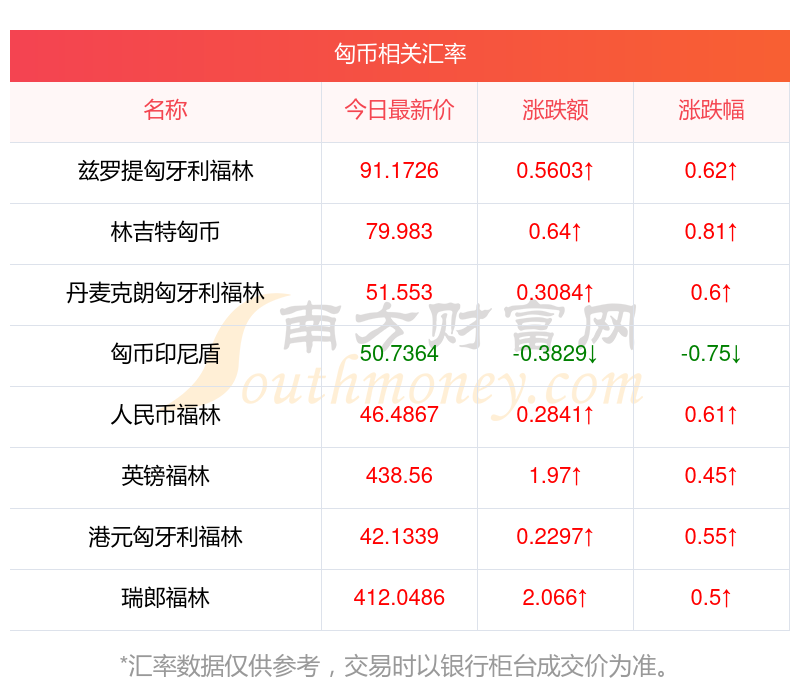 南方财富网为您提供匈币对印尼盾汇率最新价格详情。