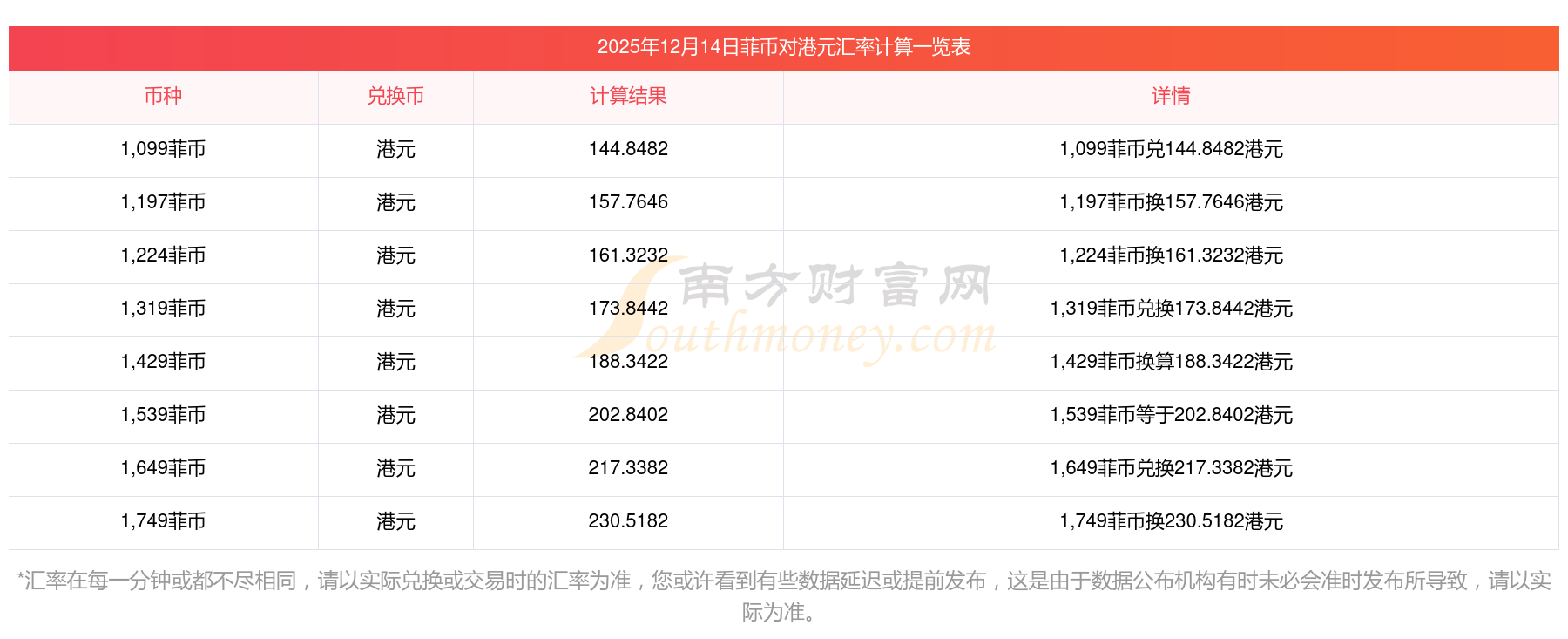 今天汇率更新!2025年12月14日77菲币兑换港元是多少?