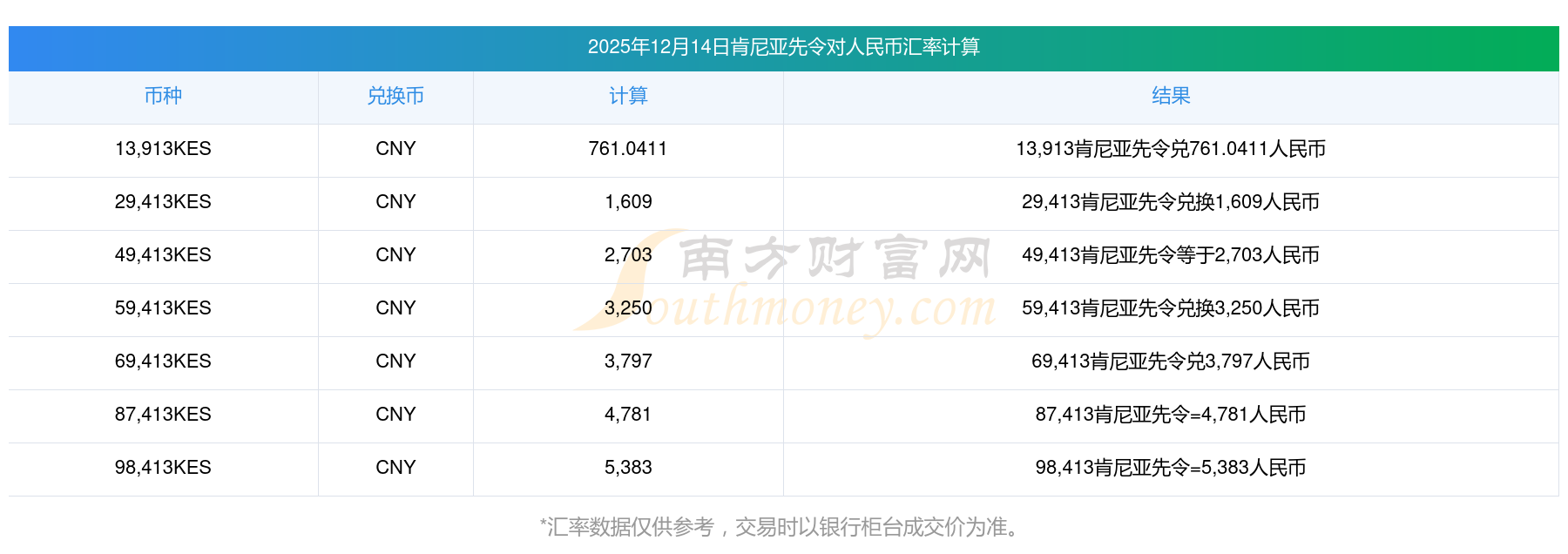 2025年12月14日肯尼亚先令对人民币的汇率多少?