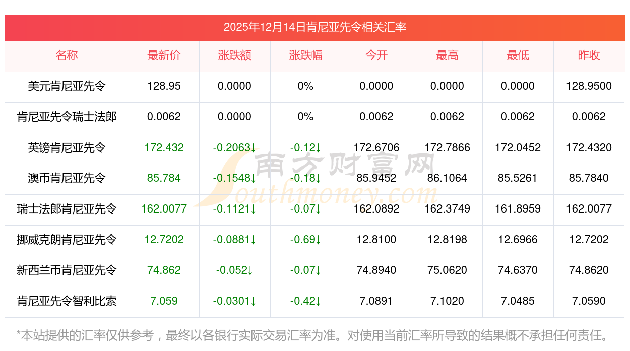 南方财富网为您提供肯尼亚先令对人民币汇率最新价格详情。