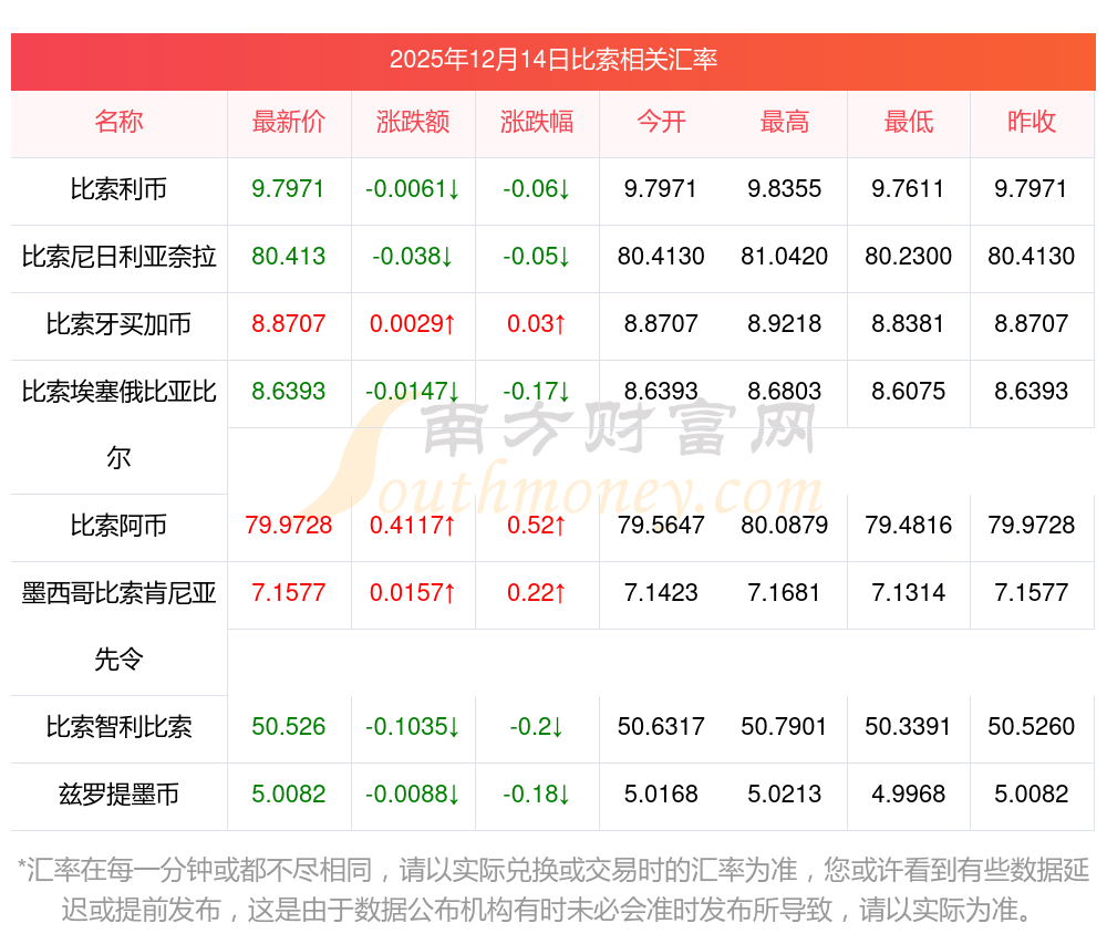 2025年12月14日比索相关汇率查询