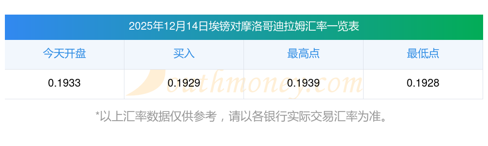埃镑兑摩洛哥迪拉姆开盘价查询(2025年12月14日)
