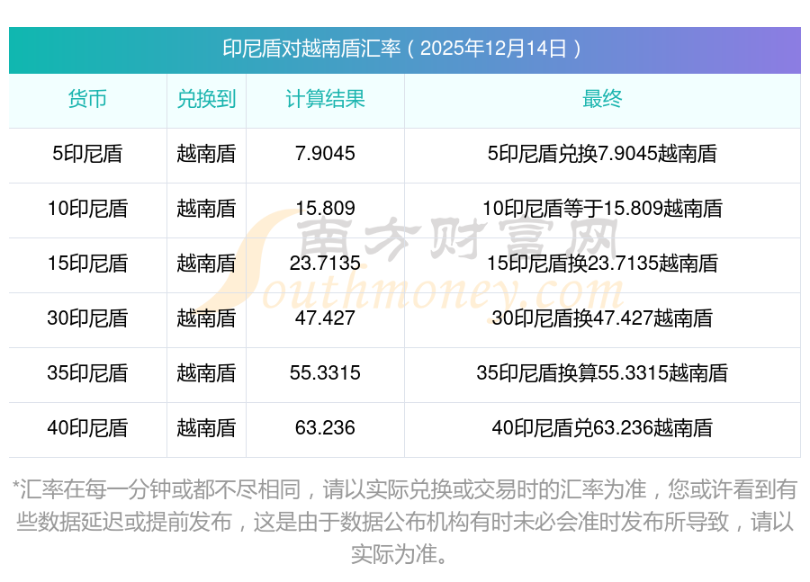 南方财富网为您提供印尼盾对越南盾汇率最新价格详情。