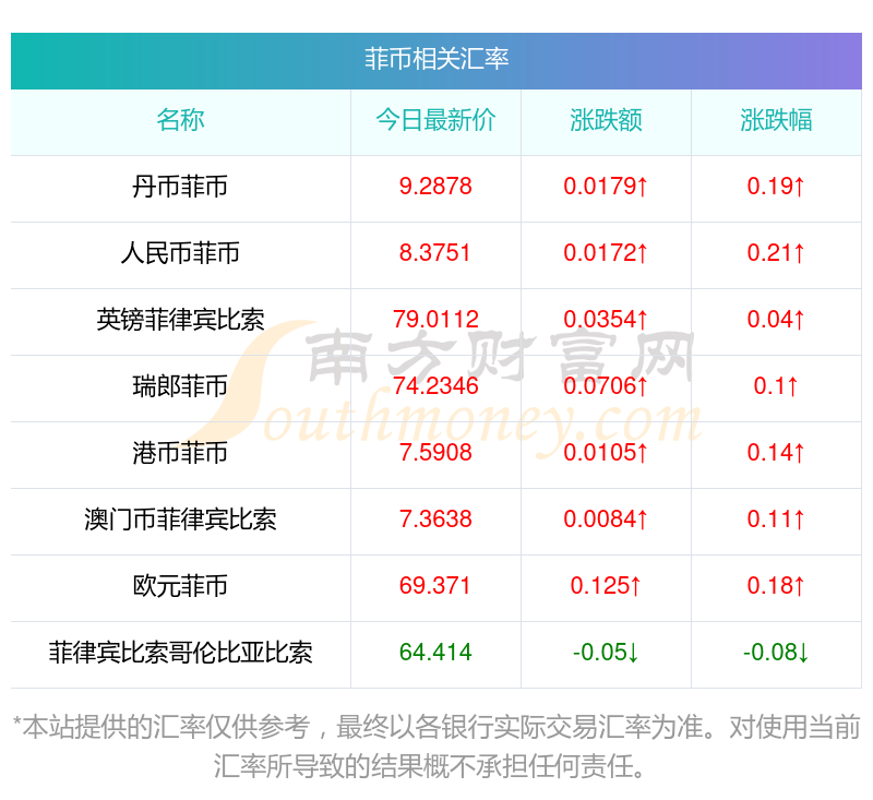 南方财富网为您提供菲币对波币汇率最新价格详情。