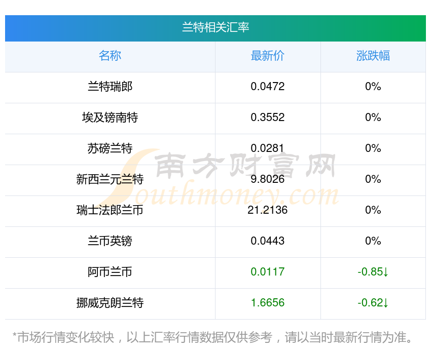南方财富网为您提供兰特对港元汇率最新价格详情。
