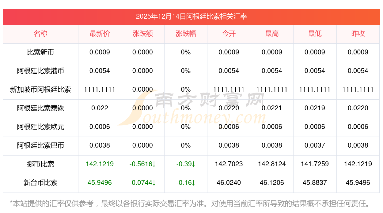 2025年12月14日阿根廷比索相关汇率查询
