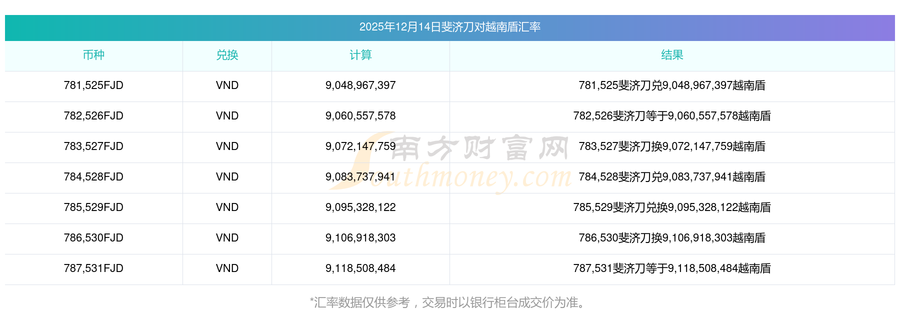 南方财富网为您提供斐济刀对越南盾汇率最新价格详情。
