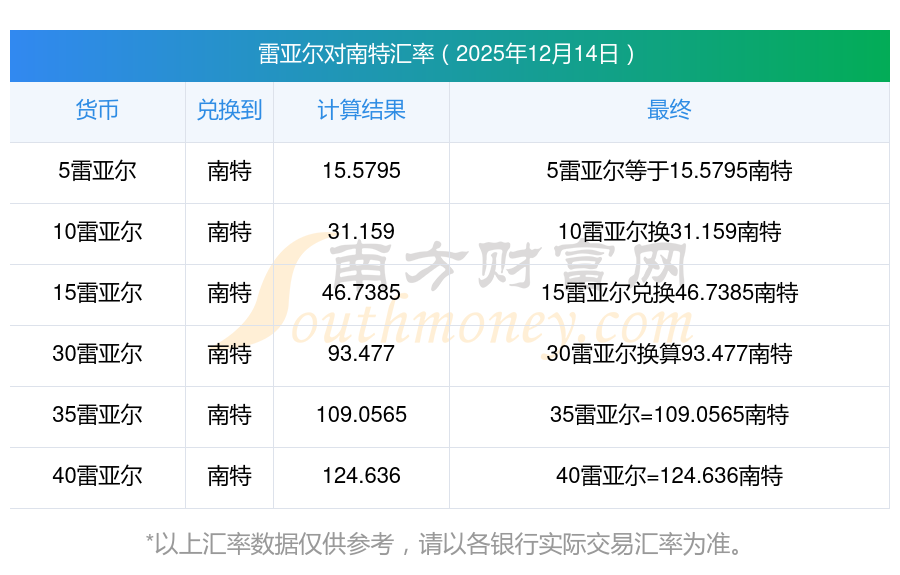 今天汇率更新!2025年12月14日92雷亚尔兑换南特是多少?