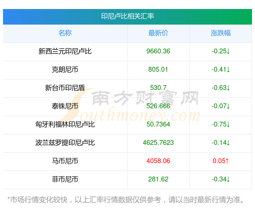 南方财富网为您提供印尼卢比对菲币汇率最新价格详情。