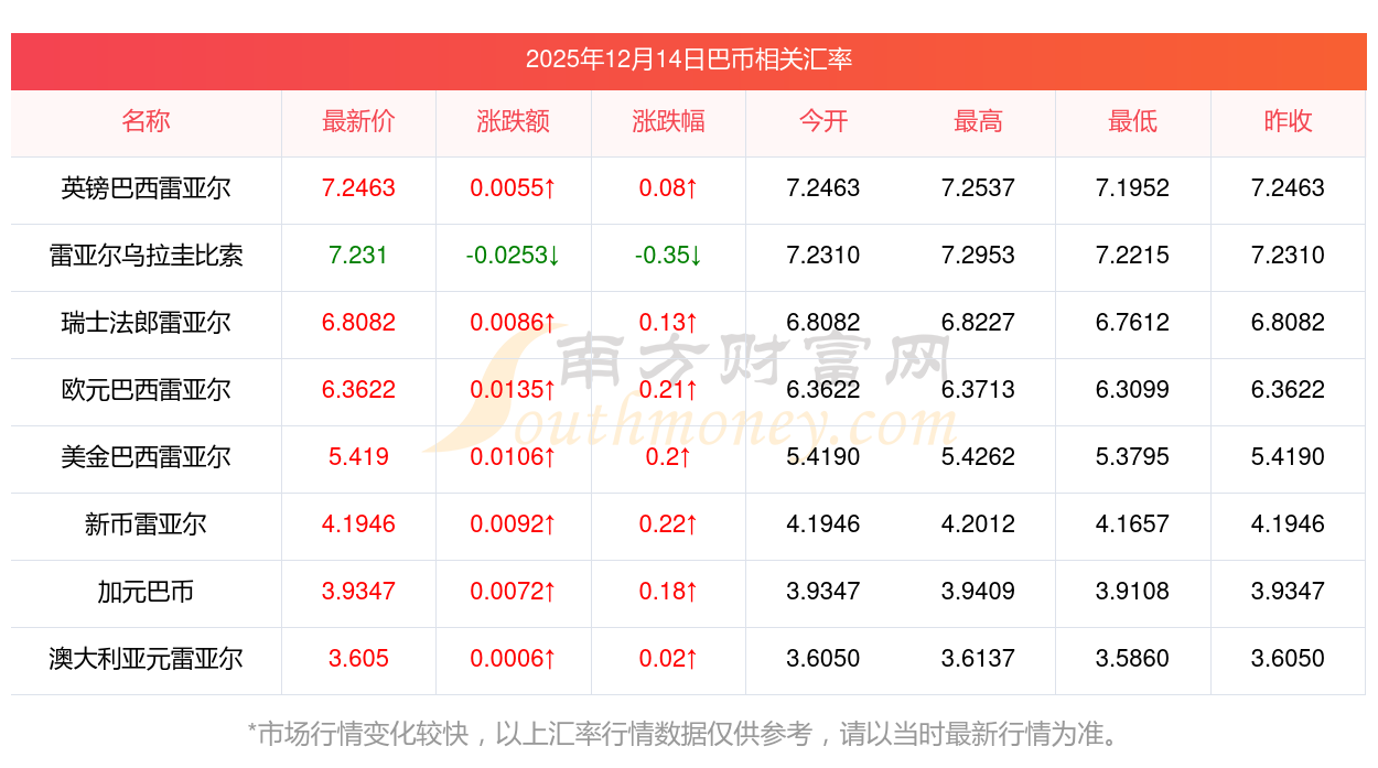 2025年12月14日巴币兑换瑞典克朗最新汇率:1.710600,今开:1.7106,昨收:1.7106,最高:1.7253,最低:1.7078。