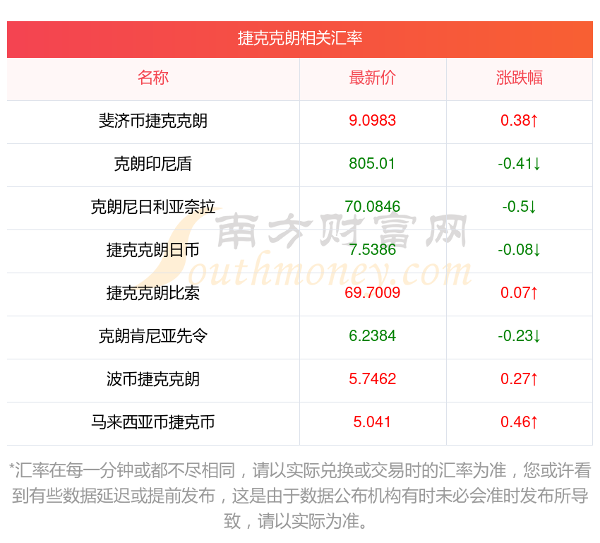 根据2025年12月14日汇率,捷克克朗兑换新元汇率最新价0.062500,今开价0.0625,昨收价0.0625,最高价0.0627,最低价0.0624。