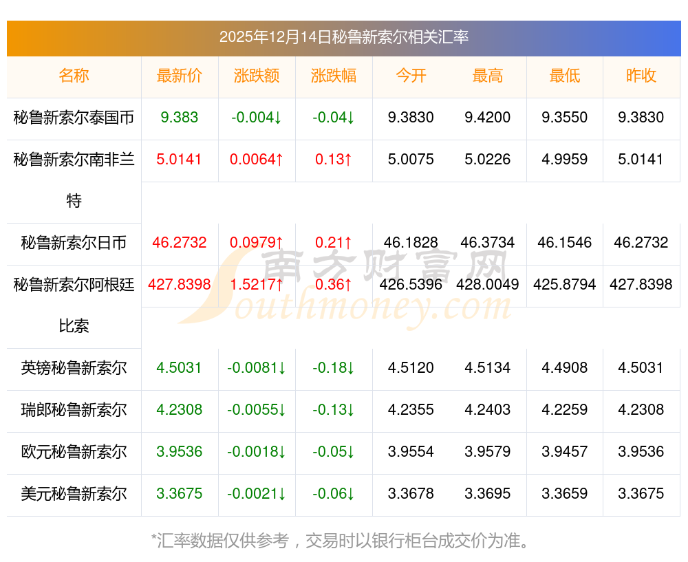 根据2025年12月14日汇率计算,PEN兑换ZAR汇率最新价5.014100,今开价5.0075,昨收价5.0141,最高价5.0226,最低价4.9959。