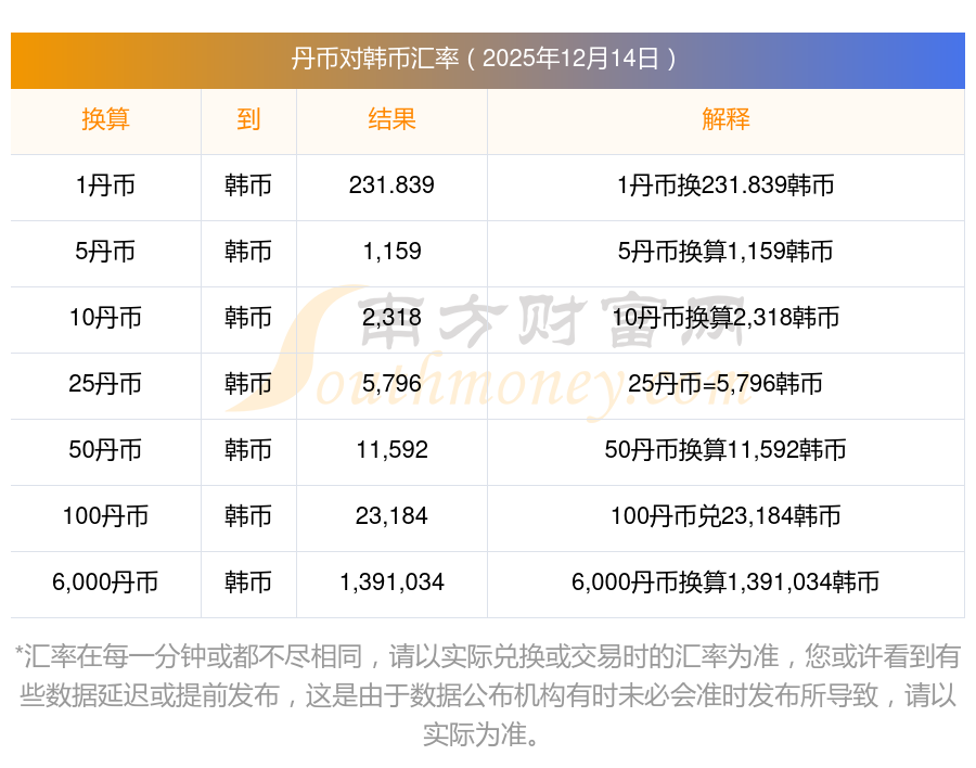 今日汇率查询|丹币兑换韩币最新查询2025/12/14