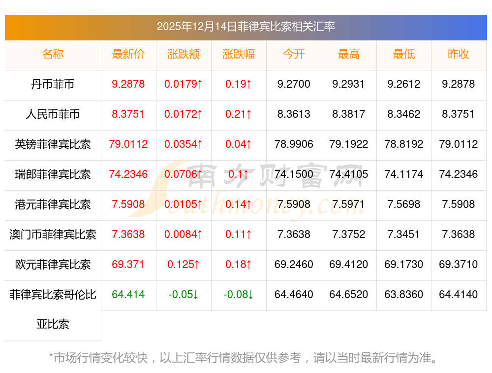 根据2025年12月14日汇率计算,PHP兑换ARS汇率最新价24.383600: