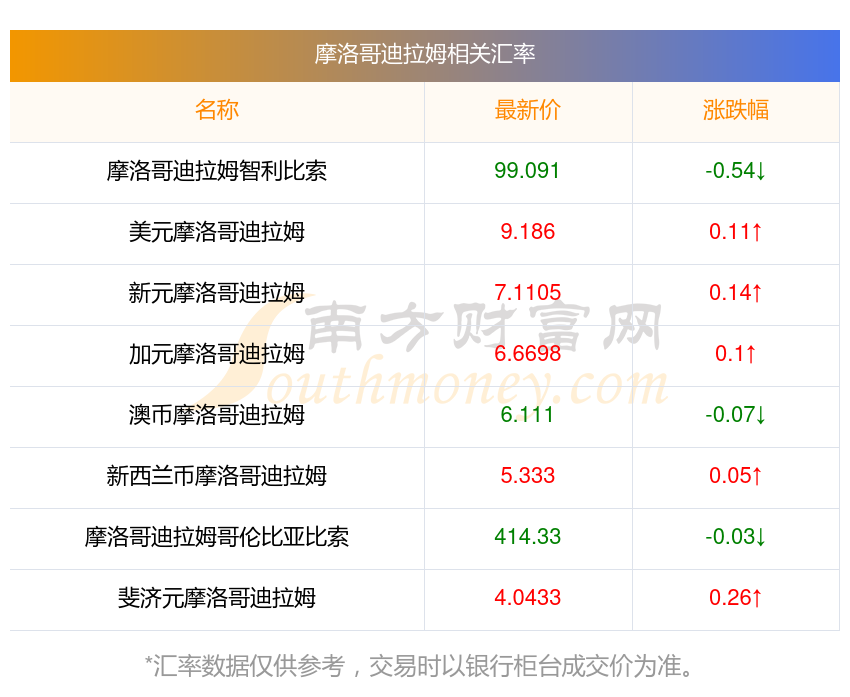 南方财富网为您提供摩洛哥迪拉姆对台币汇率最新价格详情。