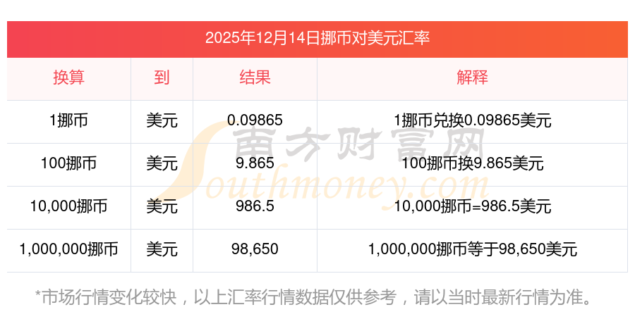 南方财富网为您提供挪币对美元汇率最新价格详情。