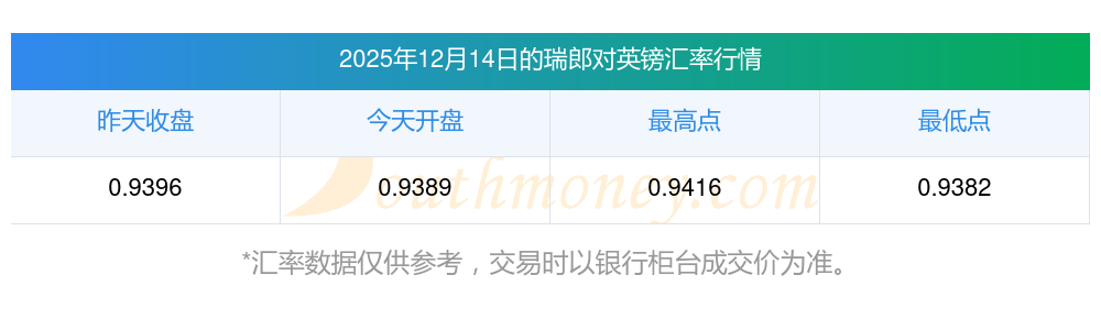 2025年12月14日瑞郎兑换英镑汇率是:0.9396