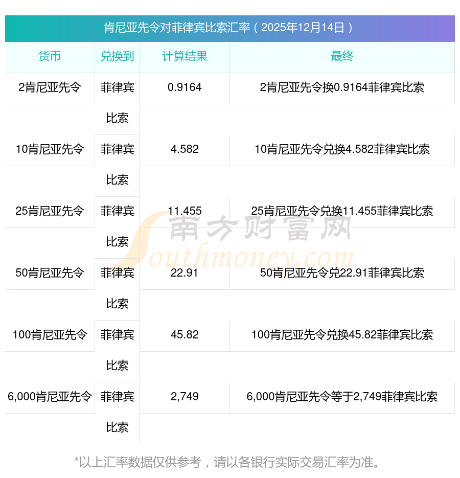 南方财富网为您提供肯尼亚先令对菲律宾比索汇率最新价格详情。