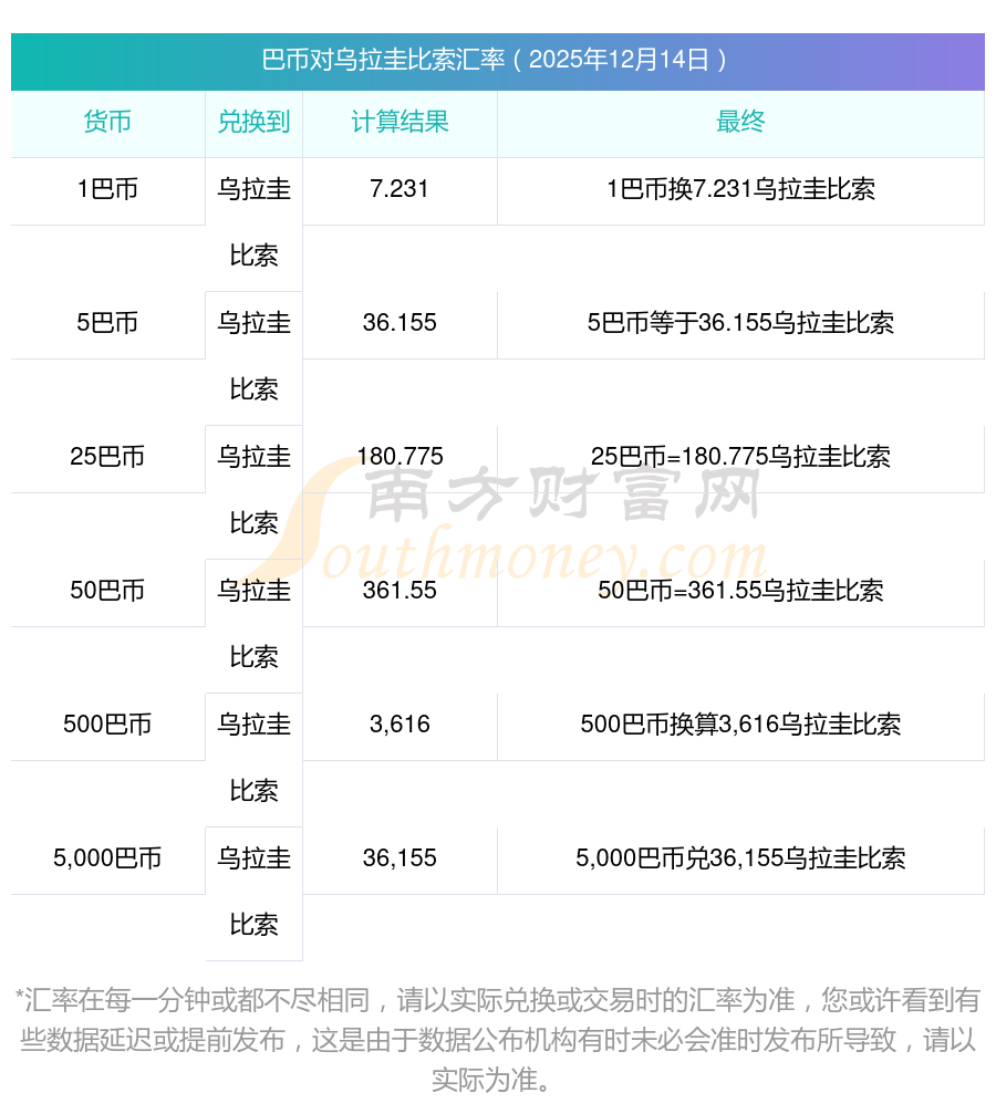 南方财富网为您提供巴币对乌拉圭比索汇率最新价格详情。