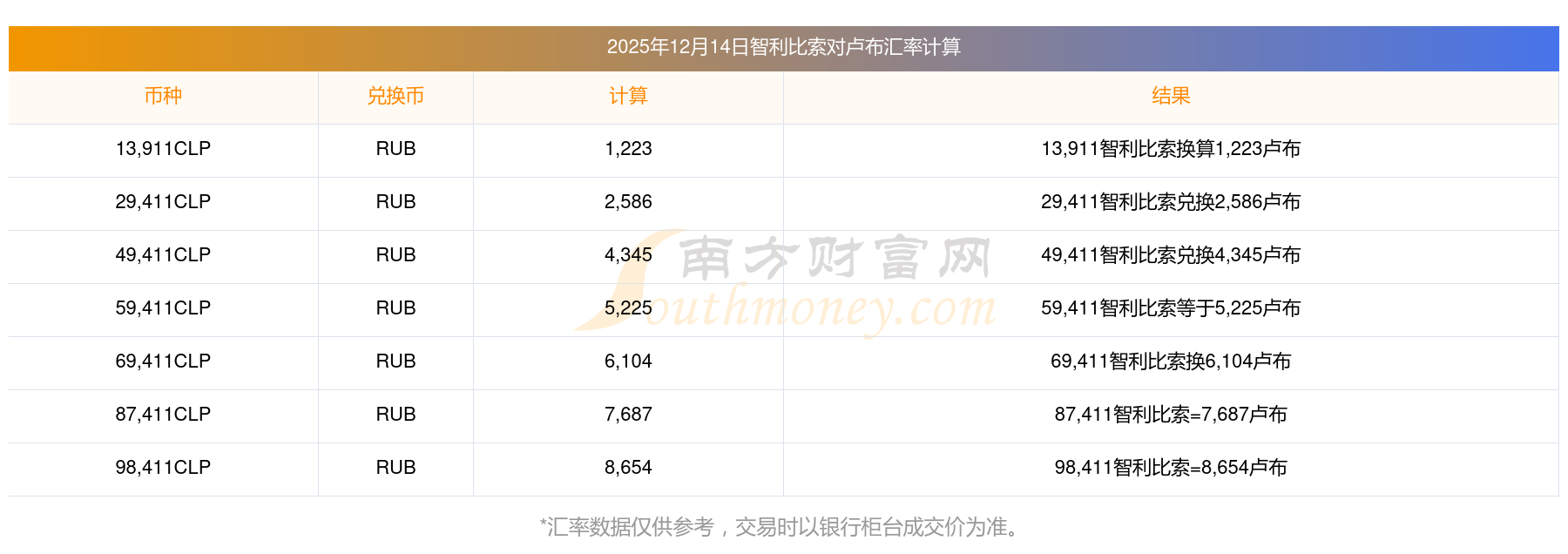 2025年12月14日智利比索与卢布的兑换汇率计算如下: