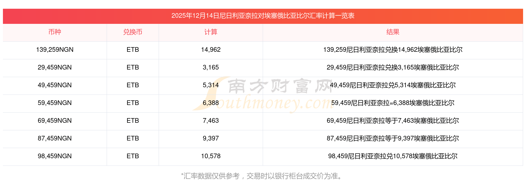 2025/12/1420尼日利亚奈拉兑换成埃塞俄比亚比尔汇率是多少 汇率查询方法