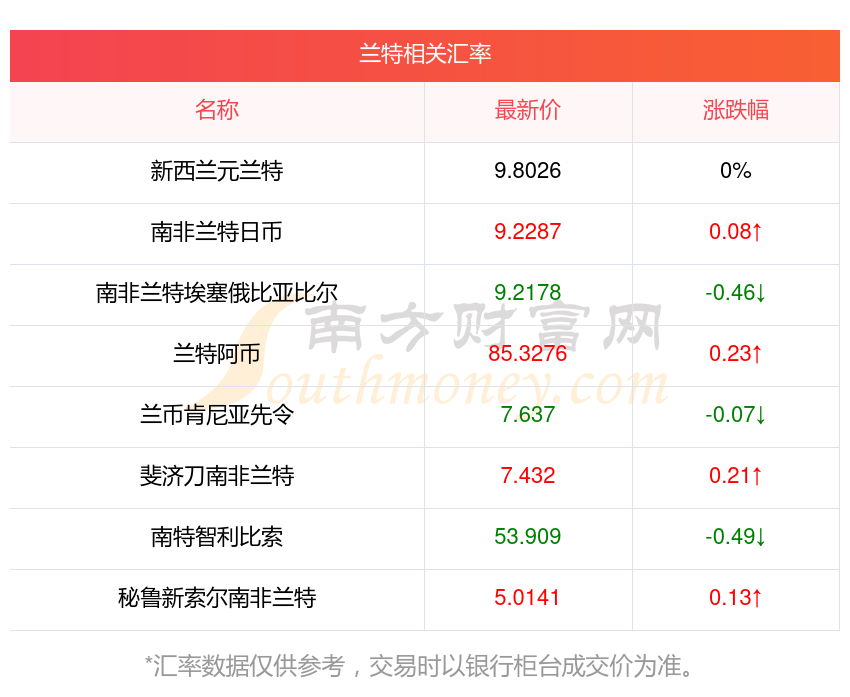 南方财富网为您提供兰特对阿币汇率最新价格详情。