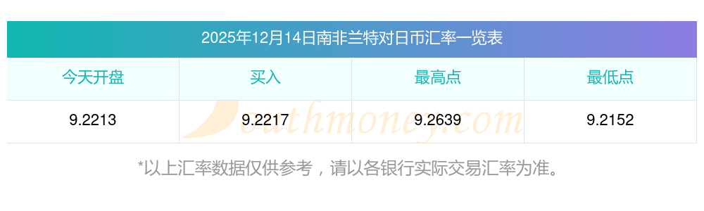 南非兰特日元汇率行情?2025/12/14南非兰特对日元汇率多少?