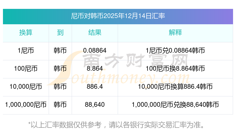 今天汇率计算:64尼币兑换多少韩币的?(2025年12月14日)