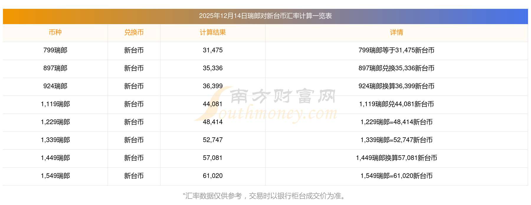 瑞郎对新台币中间价_今天瑞郎换新台币汇率计算12-14