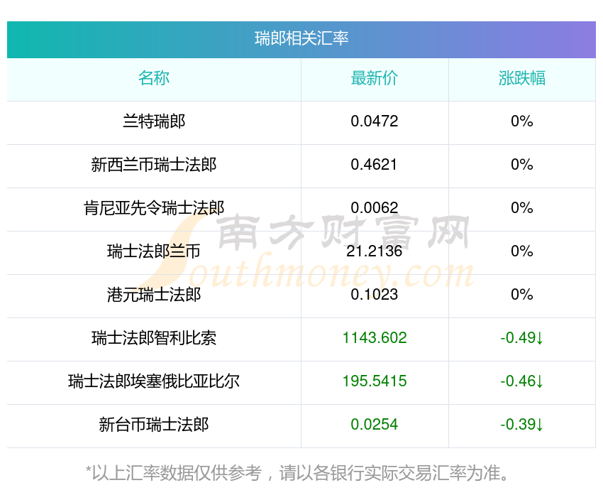 南方财富网为您提供瑞郎对新台币汇率最新价格详情。