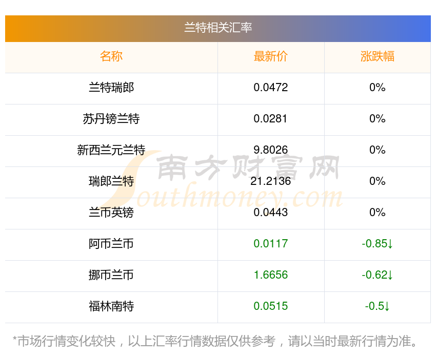 南方财富网为您提供兰特对瑞郎汇率最新价格详情。